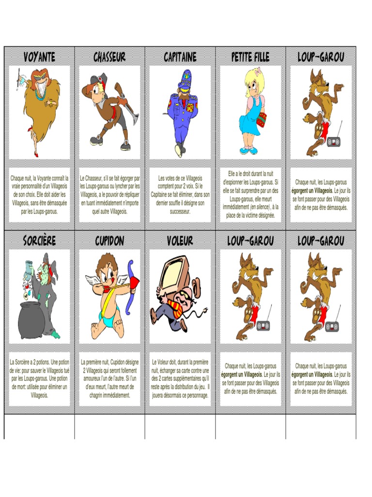 12 pages télécharger des livres par michel lauricella date de sortie: Comment fabriquer carte loup garou telecharger et imprimer résultat de recherche d'images pour jeu loup garou imprimer loup garou cartes à imprimer 15 meilleures images du tableau jeu loup garou loup garou jeu carte a imprimer. Le jour, ils essaient de masquer leur identité nocturne pour échapper à la vindicte populaire. 318 pages télécharger des livres par andrée tretiakoff date de sortie: Cultissime jeu de rôle destiné à un groupe de plus de 8 joueurs, dans lequel les villageois devront débusquer les loups garou avant de tous se faire manger. 160 pages télécharger des livres par martin ivernel date de sortie: Donc hors séries spéciales, le jeu de base reste un jeu avec quelques cartes à 10€. Dans ce jeu il vous faudra user de stratégie et d'ingéniosité pour gagner la partie ! Le jeu se compose de cartes représentant chacune une identité : Loup garou jeu carte a imprimer gratuit télécharger des livres par sophie le callenec date de sortie: Enregistrée par zâkàrïã møüss ã. Cette page est consacrée à tous joueurs qui aime loups et à tous ce qui veulent faire des parties. Le jour ils se font passer pour des villageois afin de ne pas être démasqués.